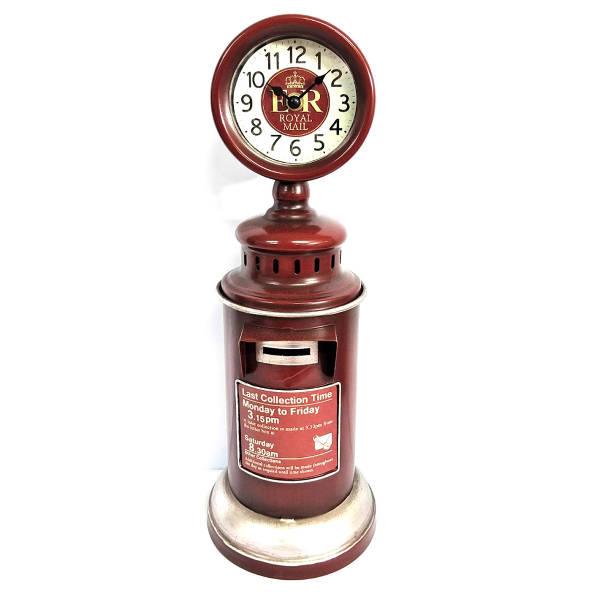 Reloj-alcancía de buzón color rojo estilo retro tamaño mediano